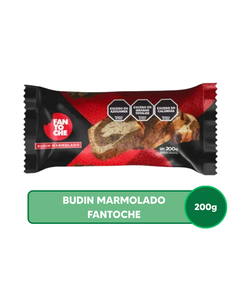 El producto BUDÍN MARMOLADO X 200 GRS de la marca FANTOCHE es una de las variedades clásicas de budines envasados de la empresa, caracterizada por la combinación de dos sabores en su masa.