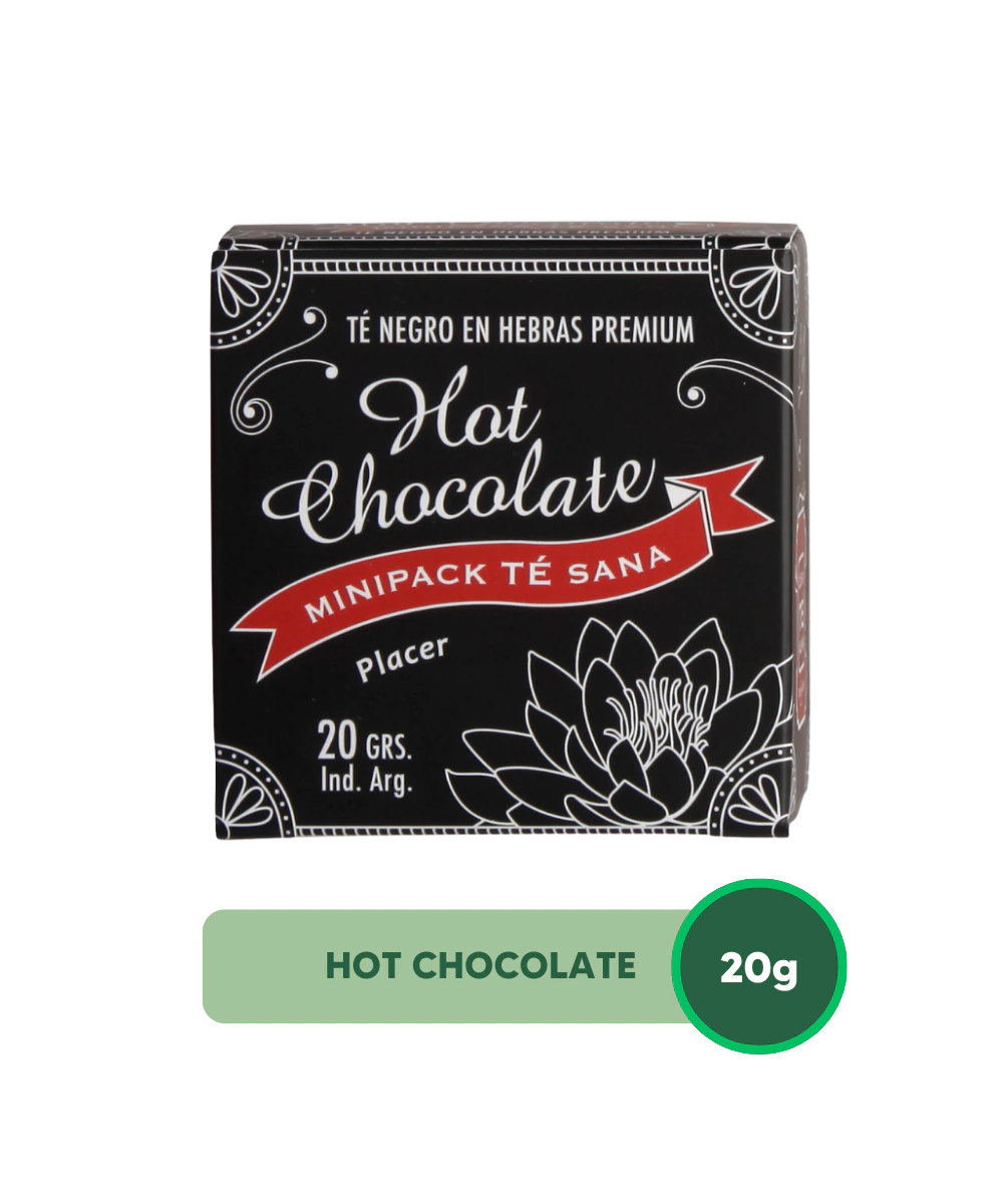 El "Hot Chocolate" es un blend de té en hebras de la marca Cura Té Alma, conocido también por el nombre de "Placer". Se presenta en un formato de Minipack de 20 gramos, ideal para degustar o para regalar.